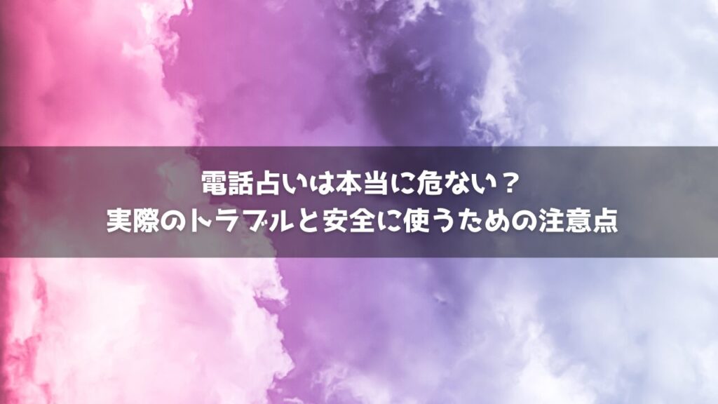 自宅にいながら相談できる「電話占い」は、とても便利なサービスとして多くの人に利用されています。 しかしその一方で、「危ない」「トラブルになった」という声もあるのが事実です。 この記事では、実際に起きた電話占いでのトラブル事例や体験談、危な... -